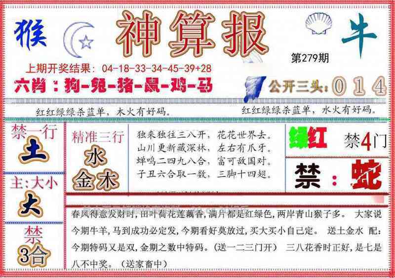 281期:七肖【马猪龙牛狗羊蛇】开:發00准 |